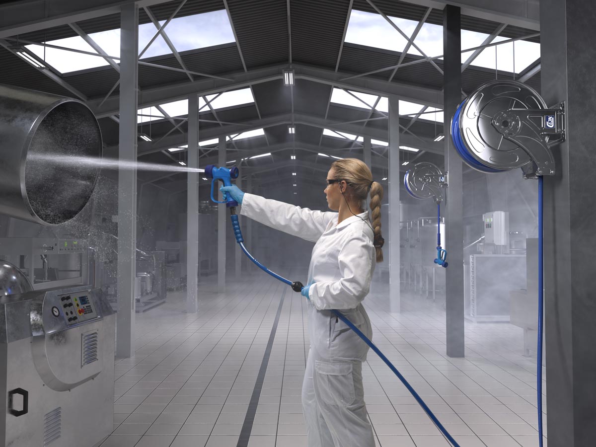 Los enrolladores de manguera de acero inoxidable OpenReel, diseñados para agua o aire comprimido, añaden un nuevo nivel de seguridad, eficiencia y ergonomía a su lugar de trabajo. Son especialmente adecuados para operaciones de lavado y entornos difíciles. Mantener las mangueras organizadas y alejadas del suelo aumentará la productividad y la seguridad.