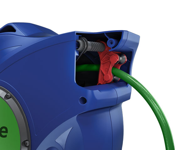 SafetyReel bSafe hortum makaraları, solunum havası uygulamaları için özel olarak geliştirilmiştir ve solunum cihazları için güvenli hava beslemesi sağlar. Otomatik, yavaş hortum geri çekme özelliğine ve kontrollü ve güvenli çalışma sağlayan entegre otomatik durdurma işlevine sahiptir. Kapalı yapı, hortumu dış etkenlerden ve mekanik hasarlardan korurken, aynı zamanda solunum havası uygulamaları için çok önemli olan sabit bir akış sağlar.