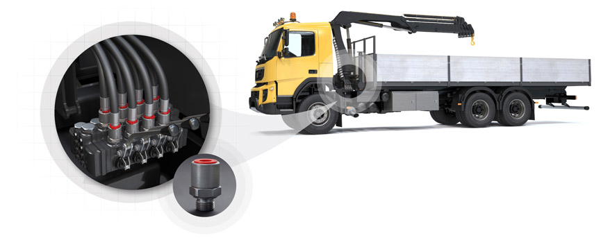 An example of an extreme swiveling application is truck-mounted cranes that cause the hoses on the valve blocks to twist and rotate in a way that causes them to wear out. When using the WEO swivel, the hoses can move freely and self-align, with 360-degree rotation under full working pressure. The result is longer hose service life and fewer claims.