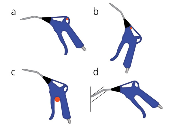 Hafif plastik gövde ve kullanıcı odaklı tasarım, tüm üfleme veya püskürtme işlemleri sırasında hem sol hem de sağ elini kullanan kullanıcılar için ergonomik konfor sağlar.