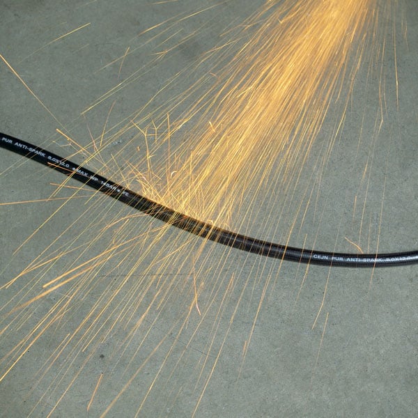 防火花PUR软管在焊接环境或使用切割设备的环境中能够抵抗火花和焦烧。 还有一种由EPDM橡胶制成的抗静电软管,可消除静电放电并较大程度地避免四处飞溅的火花。 它配备有防护罩,可以很好地抵御恶劣环境。