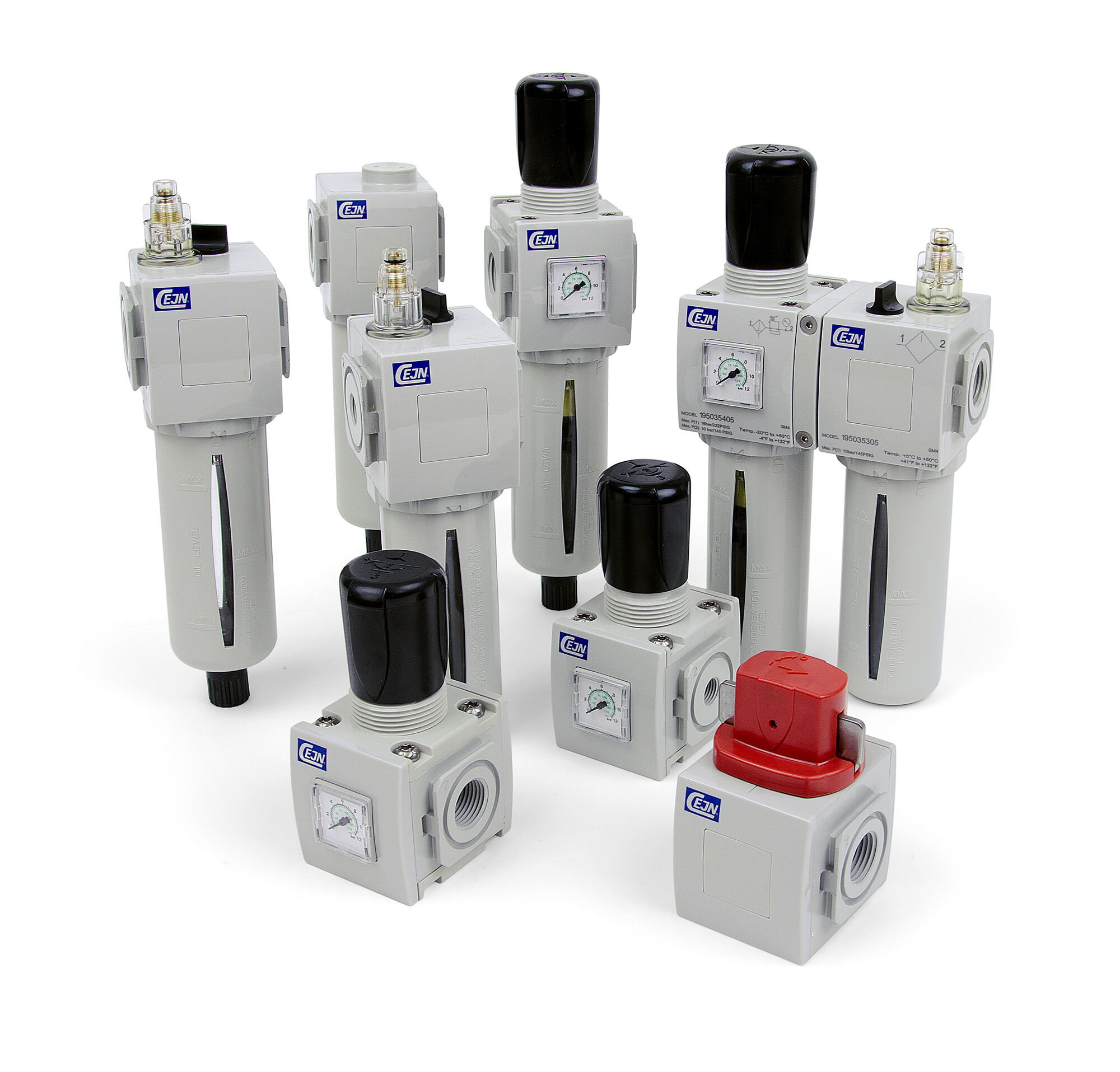 CEJN FRL系统将截止阀,过滤器,调节器和润滑器组合在一起,即成即用,是空间有限的理想选择。 截止阀可为下游机械提供截止阀,过滤器可清除固体杂物,调节器可确保足够的压力水平,润滑器可实现恒定且成比例的供油; 它们共同为您提供清洁的空气和高效的系统,可延长气动工具和设备的使用寿命。