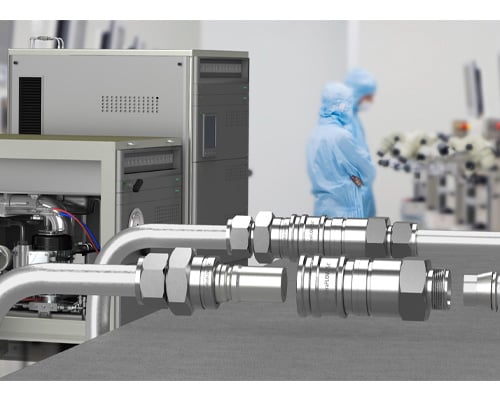 CEJN 专为半导体行业设计了特别款型:包含双套箍管接头的 UltraFLOW 快速接头。此接头旨在满足半导体制造及其他工业应用中最严苛的规格要求。双套箍管接头将更大程度确保快速、安全且无泄漏地断开系统的不同部件(如管件、管路和软管)。
